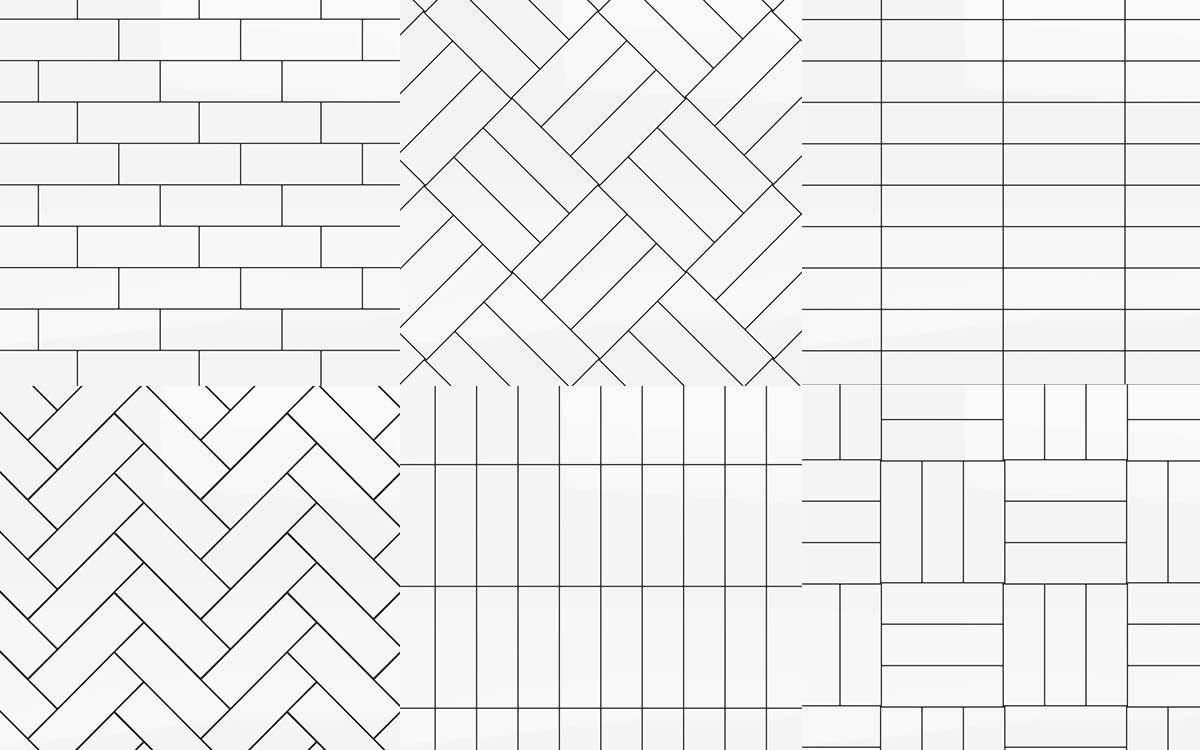 (좌) 1:4 비율의 서브웨이 타일로 4개씩 엮인 위브 패턴 | (우) 1:2 비율의 서브웨이 타일로 2개씩 엮인 위브 패턴